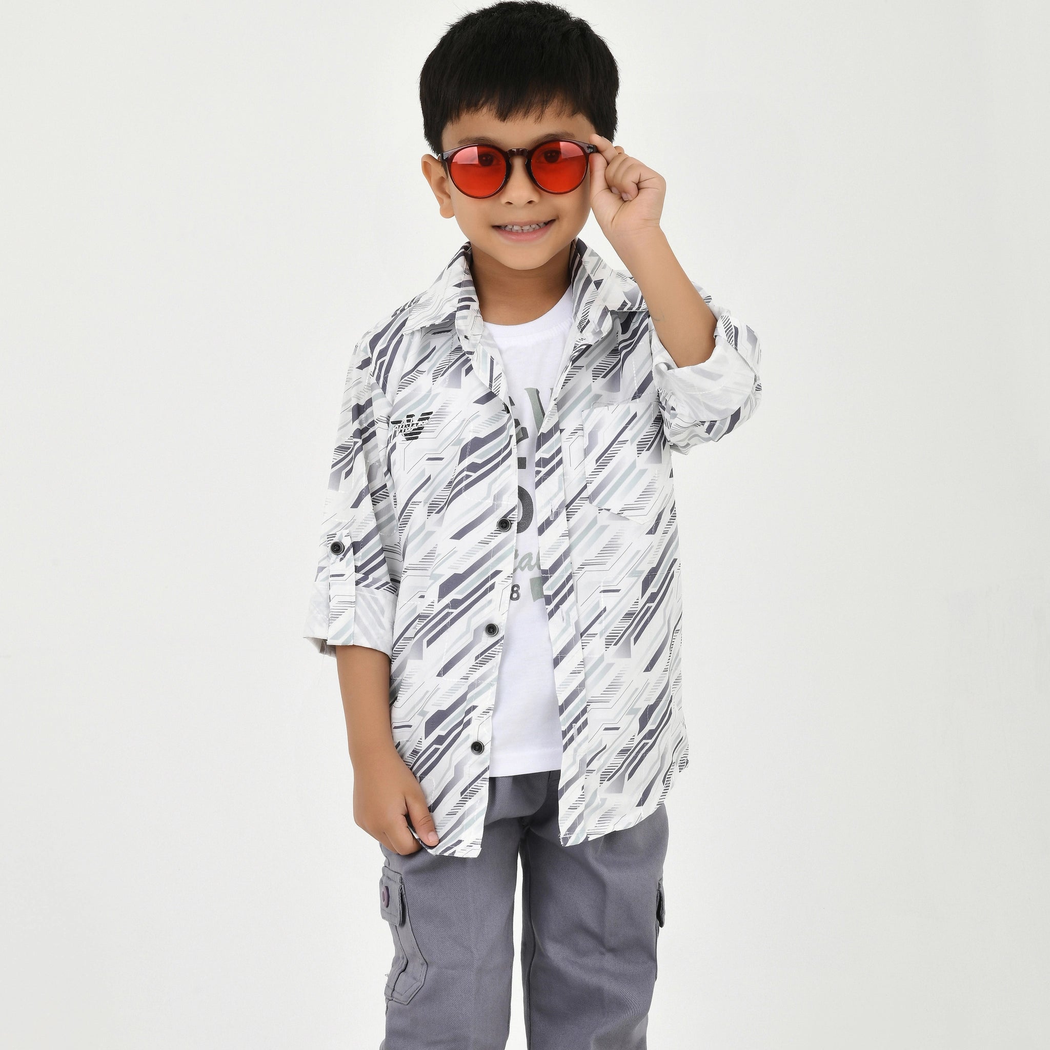 Refresh your boy’s style with our 3-Piece Boys' Set, featuring a white graphic T-shirt, a smart shirt, and matching pants. Ideal for birthdays, casual outings, and festive events, this combo offers both comfort and a fashionable look.