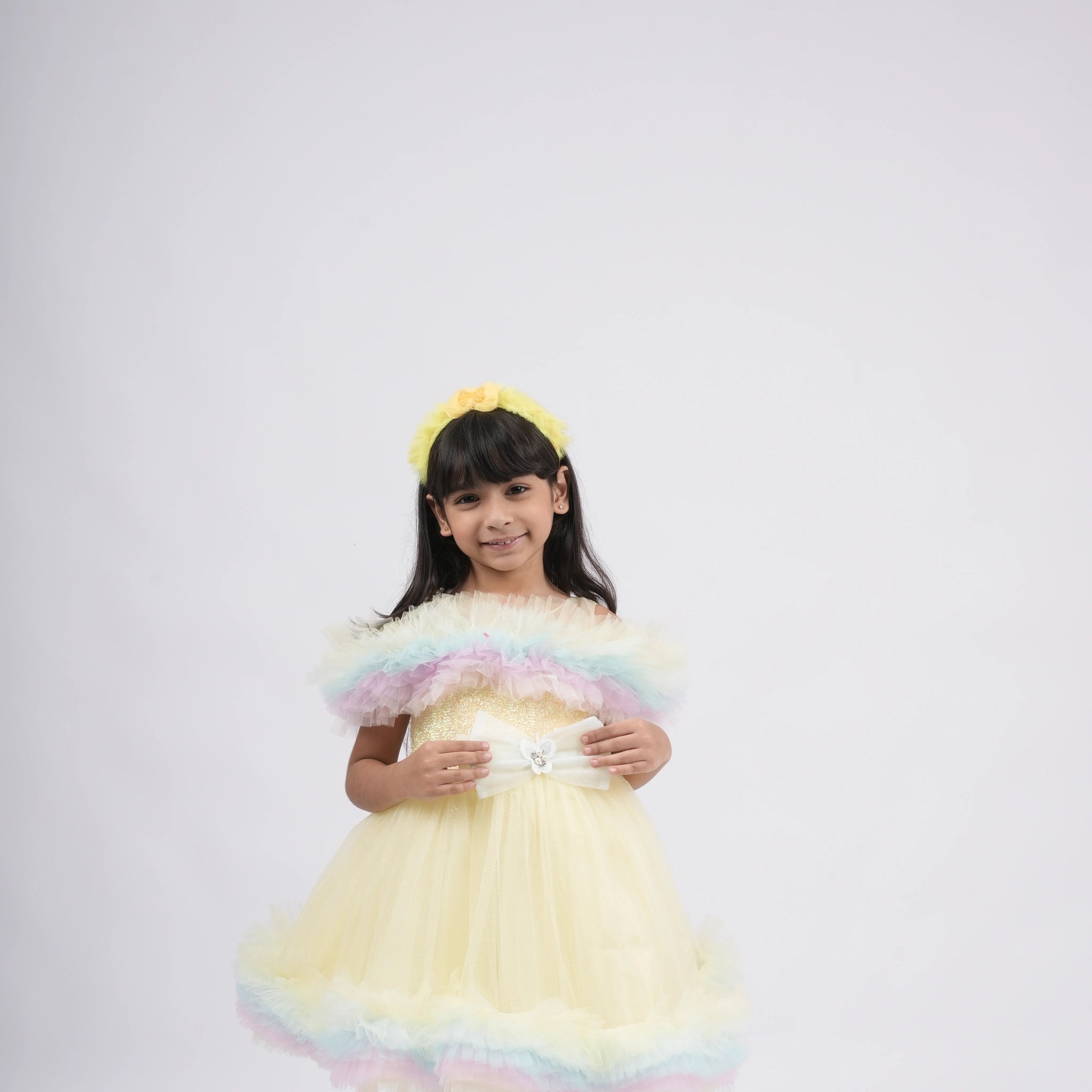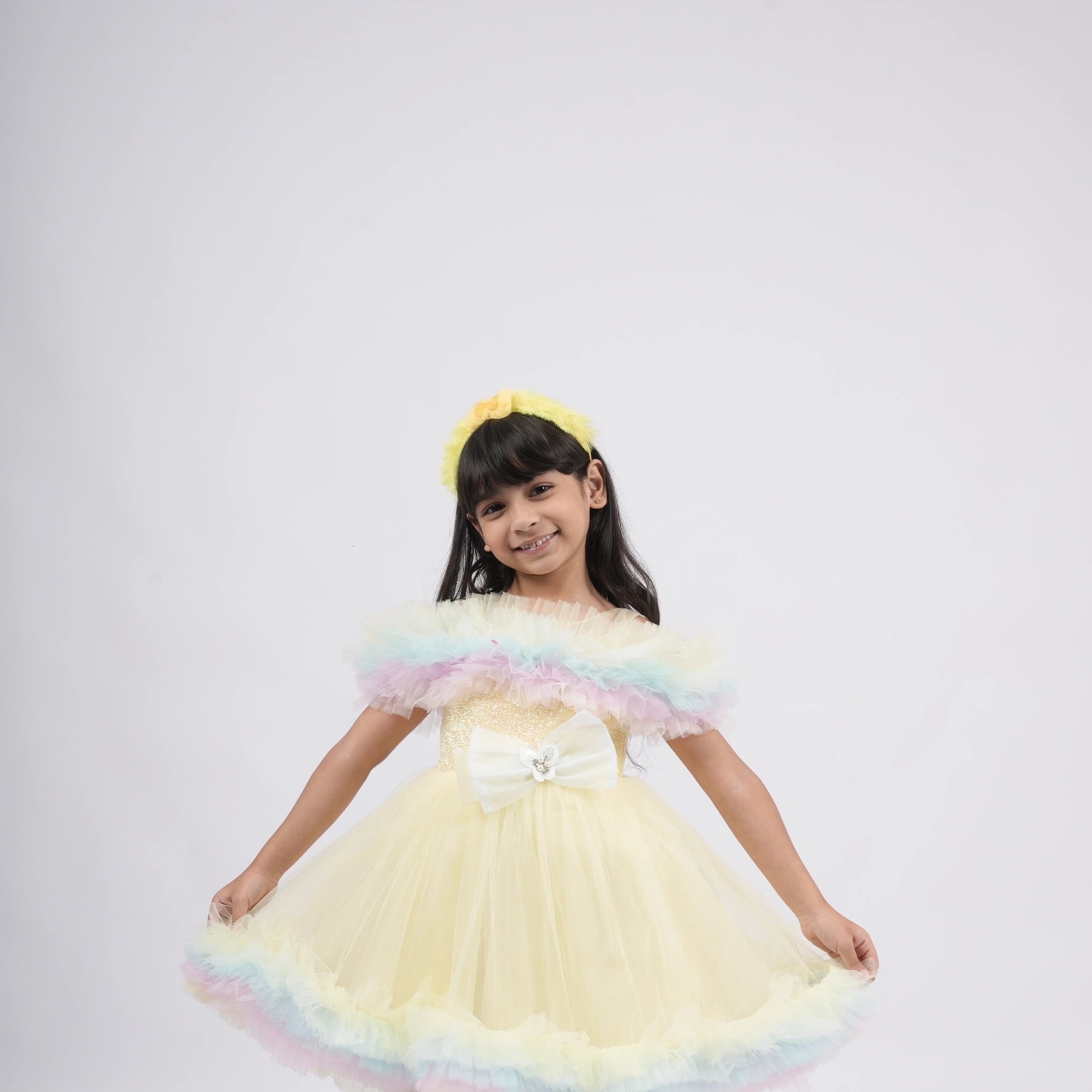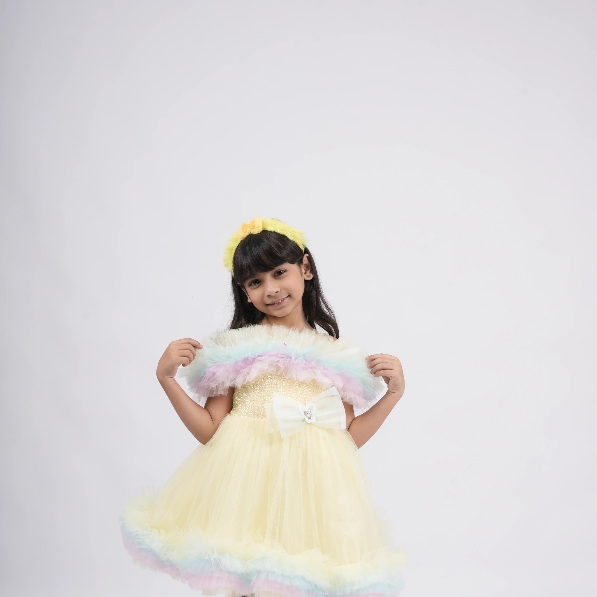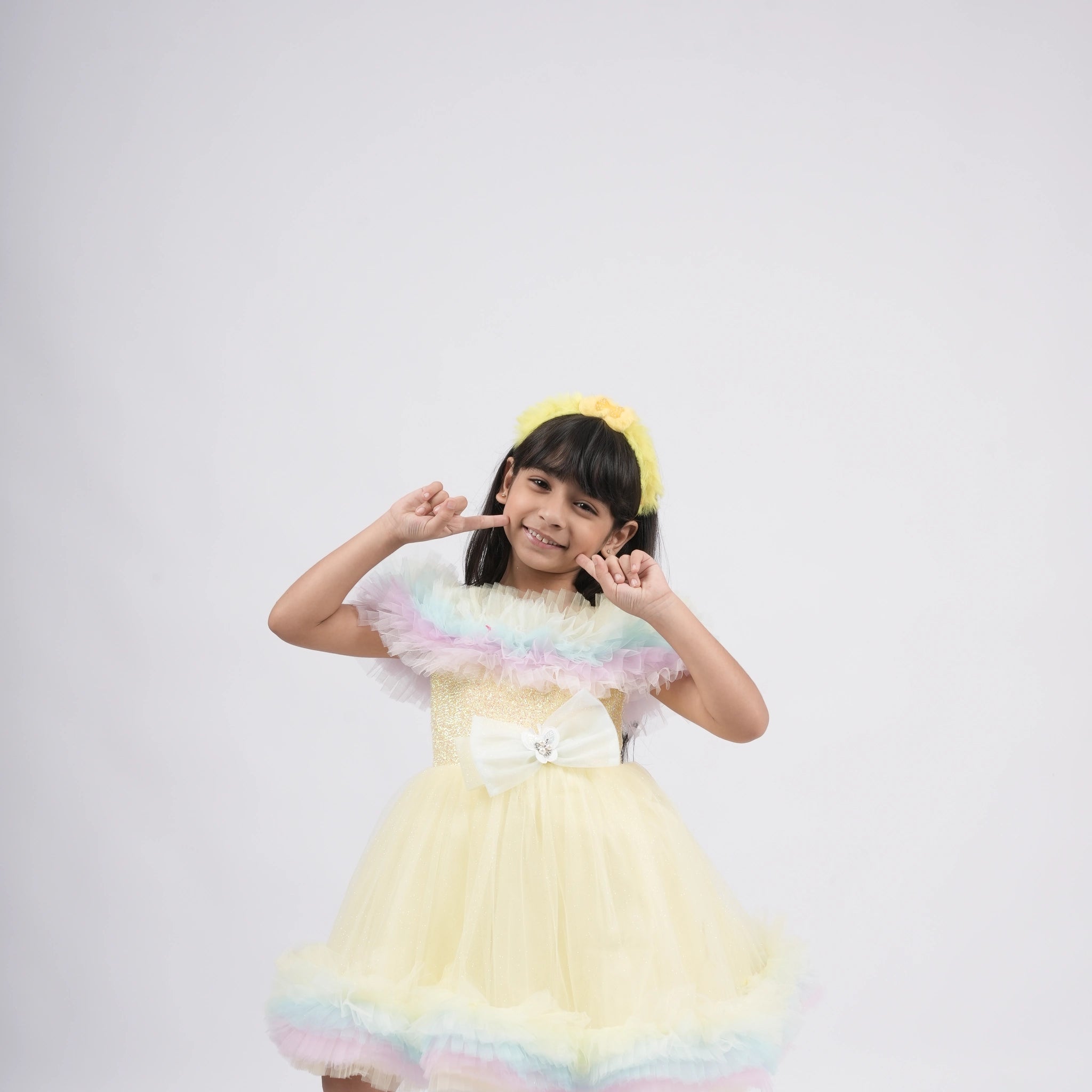 Let your little girl steal the spotlight with our Elegant Fancy Frock, adorned with a charming floral bow. Perfect for birthdays, parties, and special occasions, this beautiful dress combines elegance, comfort, and a touch of sweetness for a picture-perfect look.