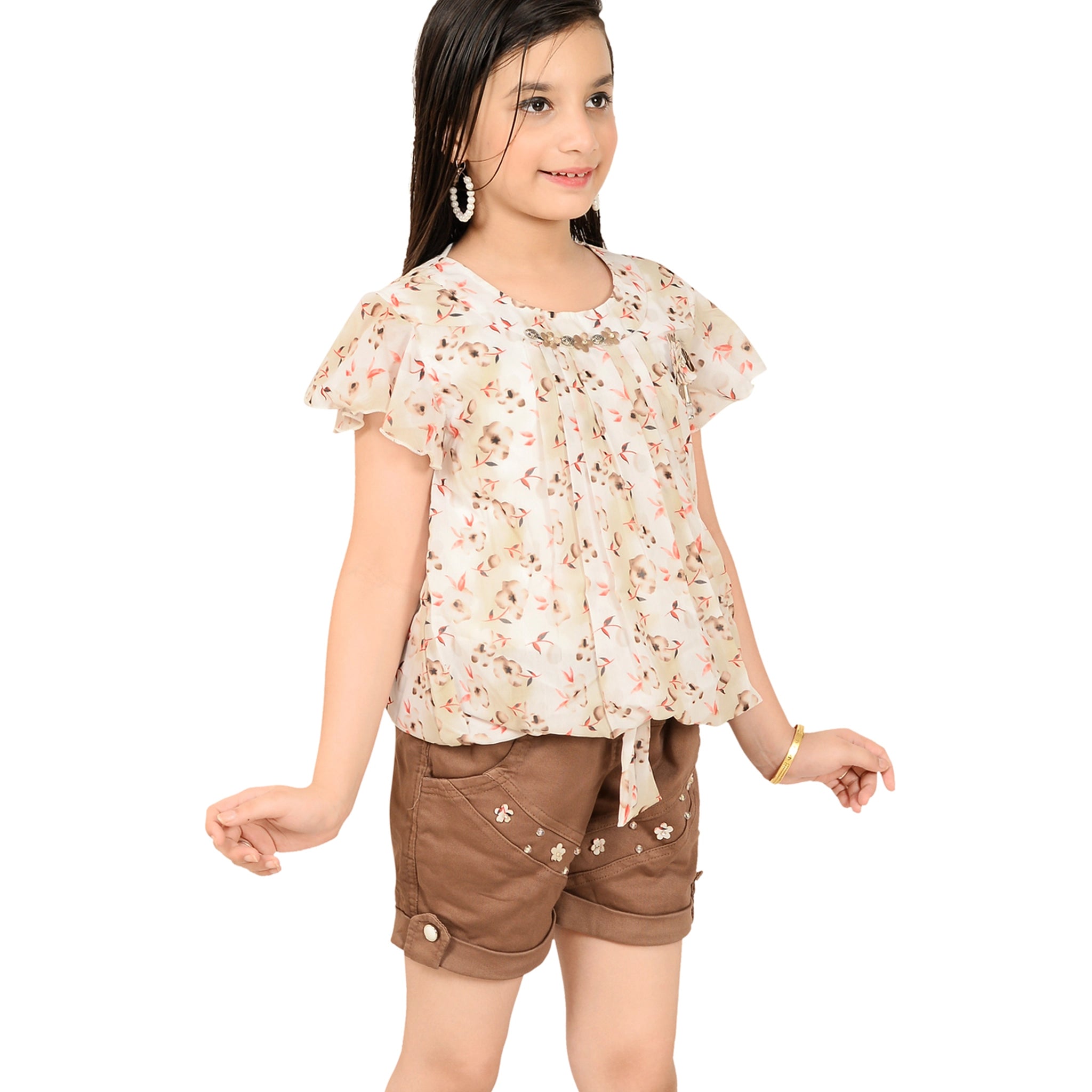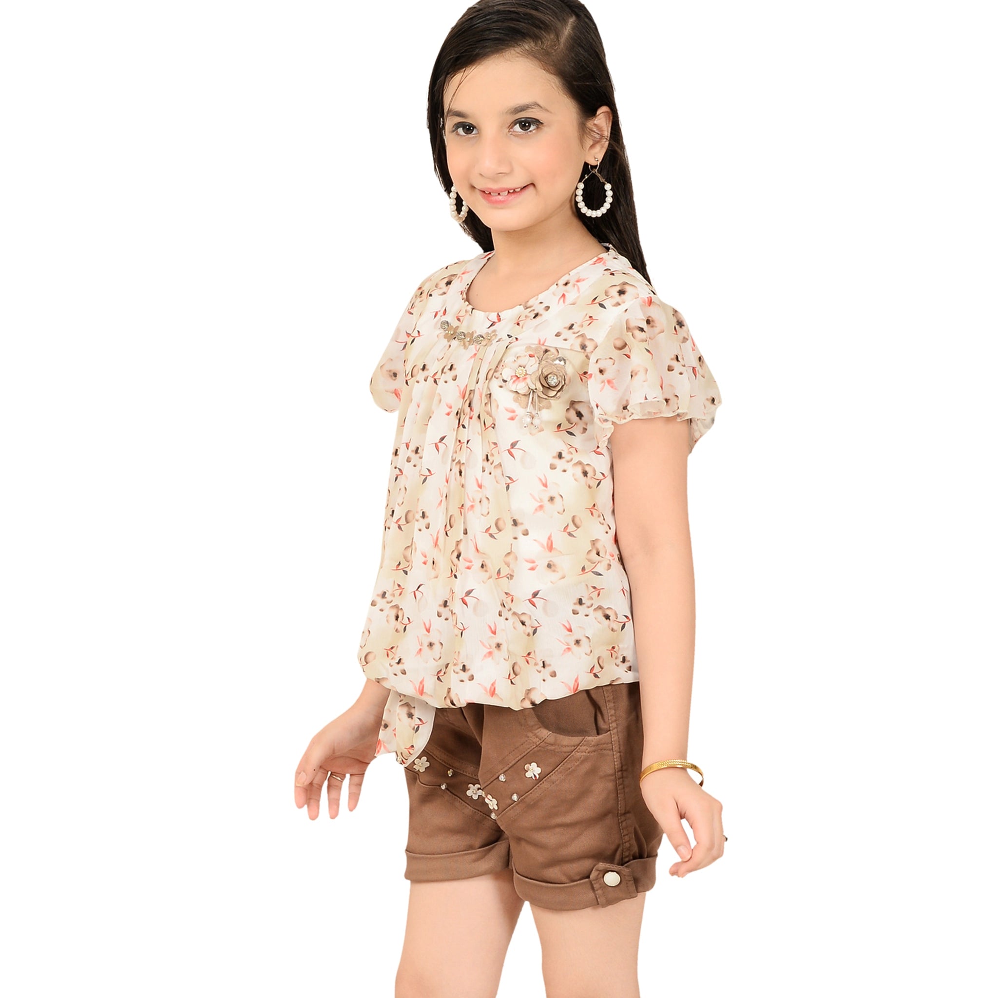 Keep it cool and stylish with this floral print top and shorts set for girls. Light, comfy, and perfect for summer days, this outfit is great for outings, vacations, or playtime. The fun print and soft fabric make it a must-have for easy, everyday style.