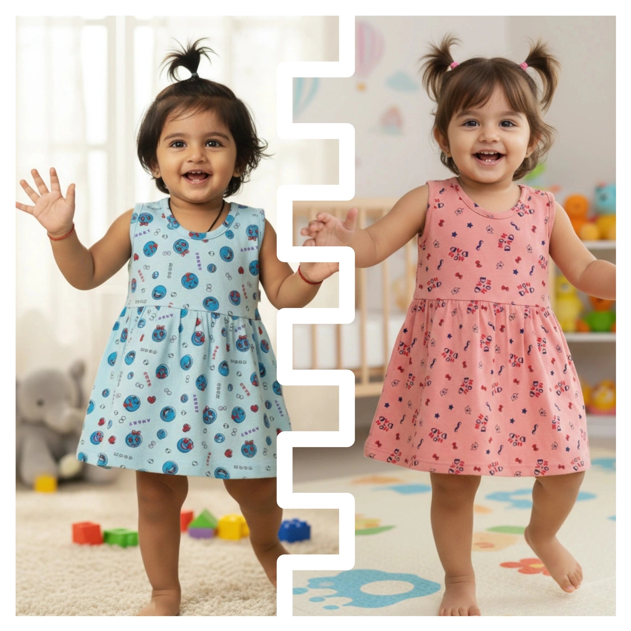 Adorable sleeveless frock for baby girls with sunflower & bee print. Perfect summer wear for birthdays, playdates & daily outings. Soft & comfy fabric.
