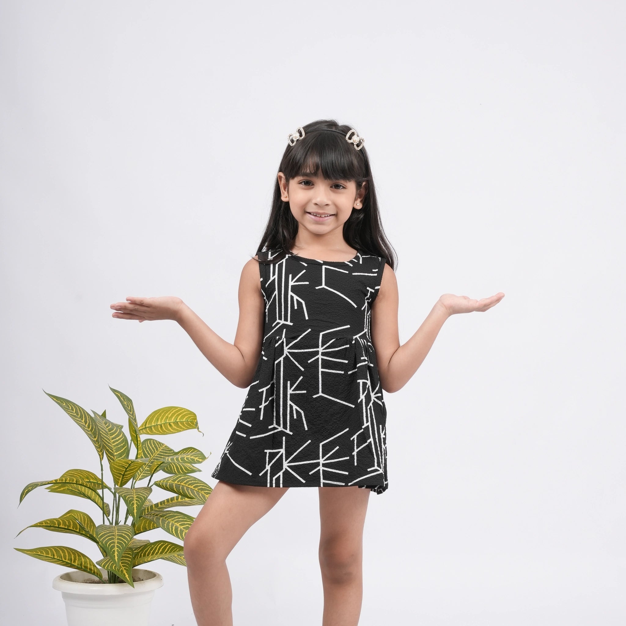 Keep your little one cool and stylish this summer with our Summer Cotton Frock for Girls featuring a chic abstract line design. Crafted from lightweight, breathable cotton, this frock ensures all-day comfort while offering a trendy look for casual outings, birthday parties, or summer picnics. The easy slip-on style and soft fabric make it a must-have addition to every girl's wardrobe.