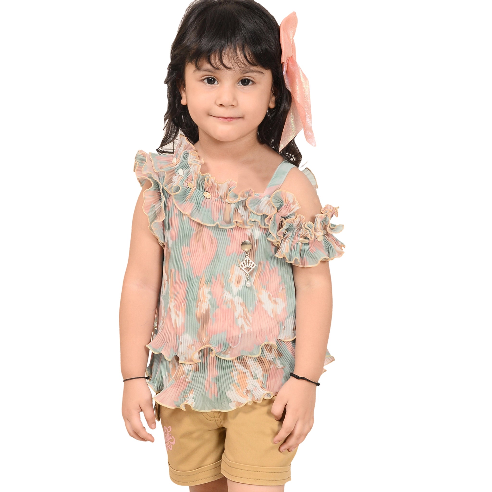 Give your girl a cute summer look with this trendy off-shoulder ruffle top and shorts set. Light, breezy, and perfect for sunny days, this outfit is great for outings, vacations, or playtime. Made with soft, comfy fabric that keeps her cool and stylish all day long.