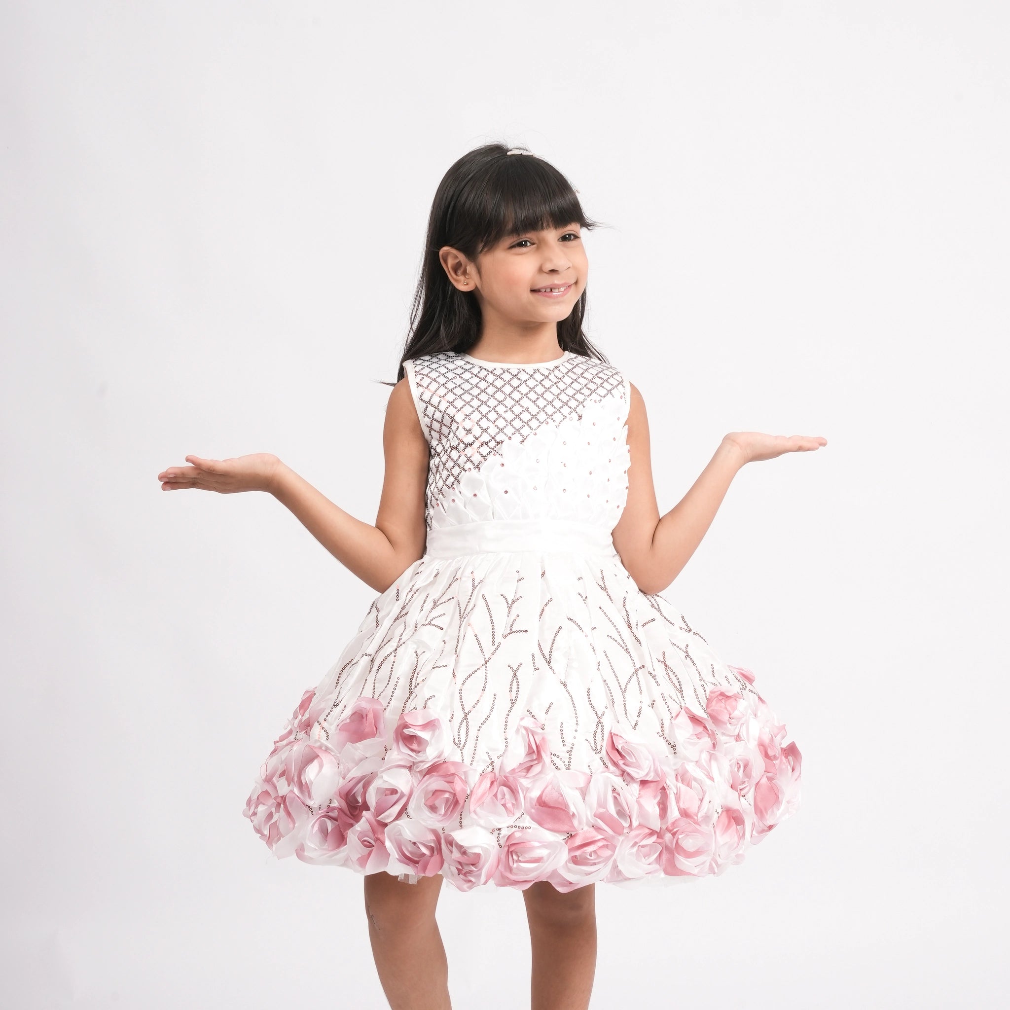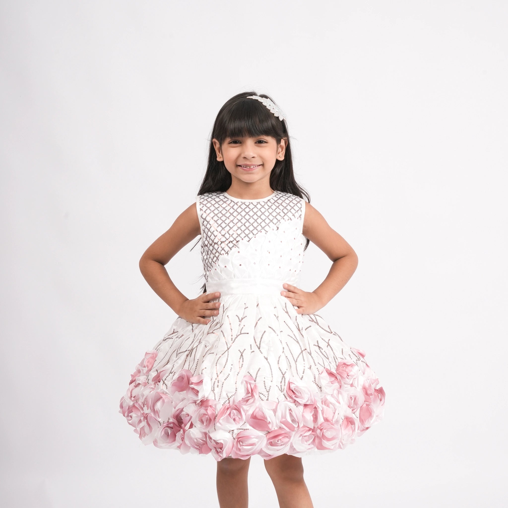 Elegant White & Pink Flower Girl Dress – Party & Special Occasion Wear.