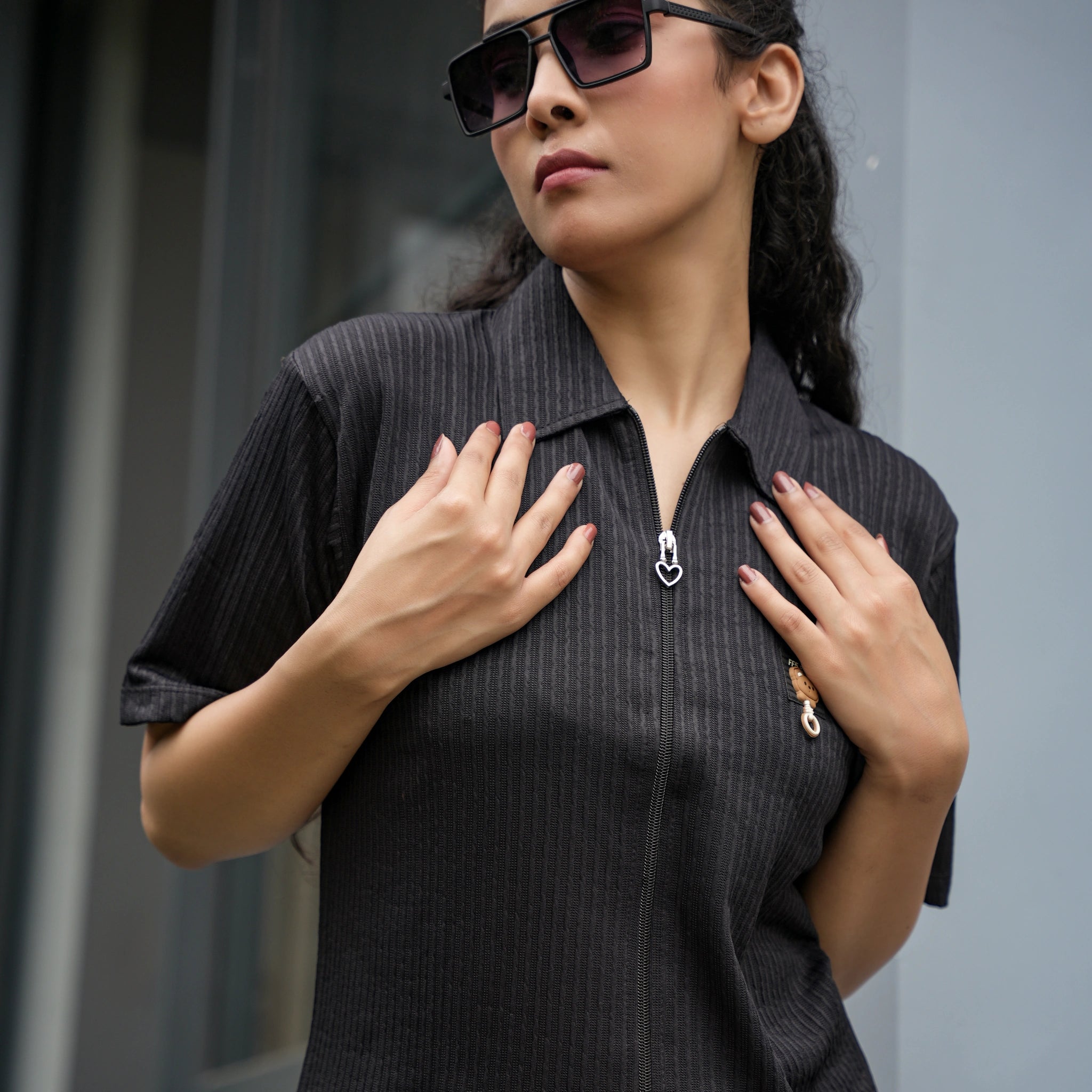 Stay stylish with this women’s ribbed zip-up polo t-shirt, featuring a chic collar, front zipper, and soft ribbed fabric—perfect for casual summer outfits with jeans or skirts.